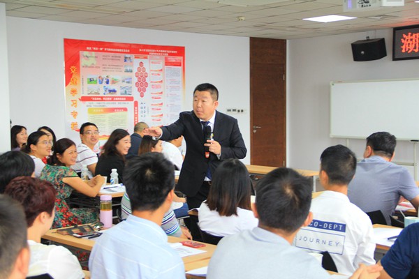 此次培訓(xùn)特邀清華大學(xué)、北京大學(xué)等高校總裁班特聘講師、營(yíng)銷(xiāo)咨詢(xún)師高海友授課。高老師采取分組積分形式,從選人與培養(yǎng)、培養(yǎng)市場(chǎng)精英、提升營(yíng)銷(xiāo)技能、打造管理團(tuán)隊(duì)、成長(zhǎng)式激勵(lì)等五個(gè)方面詳細(xì)講授了如何打造高效團(tuán)隊(duì)的舉措。高老師授課方式幽默風(fēng)趣、內(nèi)涵深刻,運(yùn)用情景式案例,實(shí)戰(zhàn)型解答,以真實(shí)案例說(shuō)明實(shí)際問(wèn)題,并提出營(yíng)銷(xiāo)人員需要做到明道生慧,即明人、明人性、明專(zhuān)業(yè)、明行業(yè)、明競(jìng)品、明客戶(hù)、明關(guān)系、明流程、明時(shí)勢(shì)、明根本。此次培訓(xùn)為期一天,在整個(gè)培訓(xùn)中,講師穿插一系列的現(xiàn)場(chǎng)互動(dòng),形式豐富多彩,員工積極參與受益匪淺,整個(gè)課堂充滿(mǎn)活力。