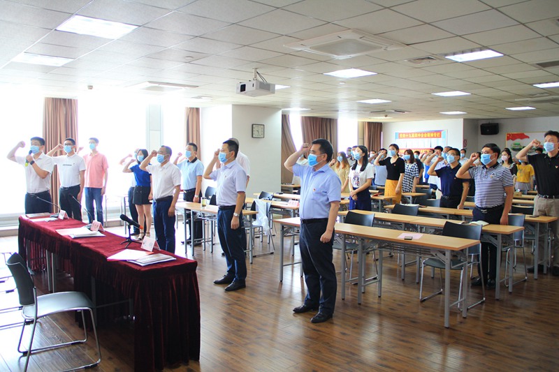 會(huì)議在雄壯的國歌聲中拉開帷幕。新老黨員佩戴黨徽、高舉右拳,面對(duì)黨旗進(jìn)行了入黨宣誓,重溫了入黨誓詞。