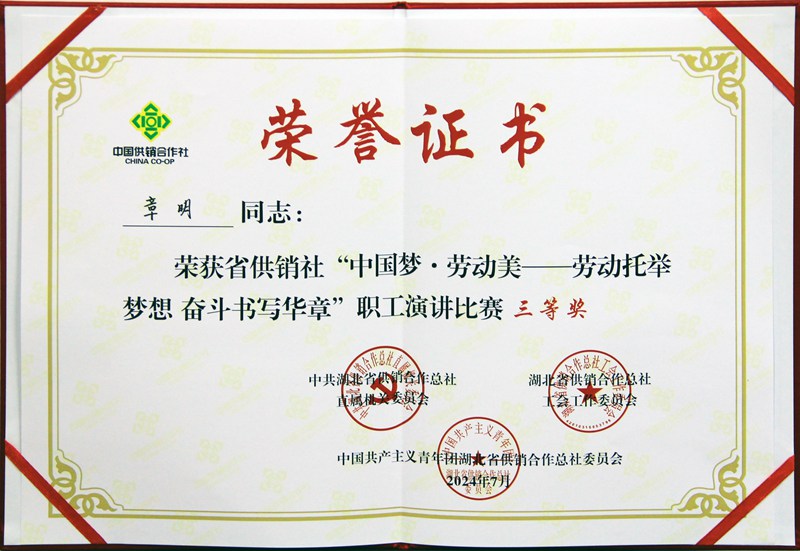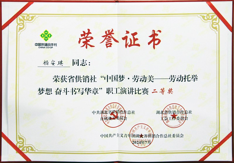 7月24日上午,由省供銷(xiāo)社直屬機(jī)關(guān)黨委、工會(huì)、團(tuán)委聯(lián)合舉辦的“中國(guó)夢(mèng)·勞動(dòng)美——勞動(dòng)托舉夢(mèng)想 奮斗書(shū)寫(xiě)華章”職工演講比賽落下帷幕。經(jīng)過(guò)激烈角逐,農(nóng)資控股集團(tuán)榮獲省供銷(xiāo)社職工演講比賽“優(yōu)秀組織獎(jiǎng)”,公司參賽選手楊安琪、章明分別榮獲比賽二等獎(jiǎng)和三等獎(jiǎng)。